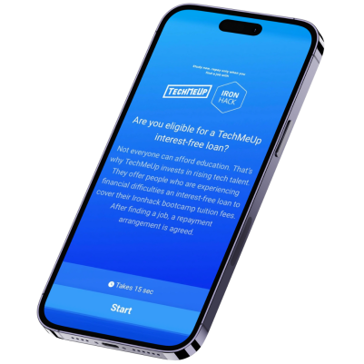 Interest-free loans for Ironhack students, which you repay after you graduate and secure a job. The loan can be used for the tuition fee, living expenses or equipment like a laptop.