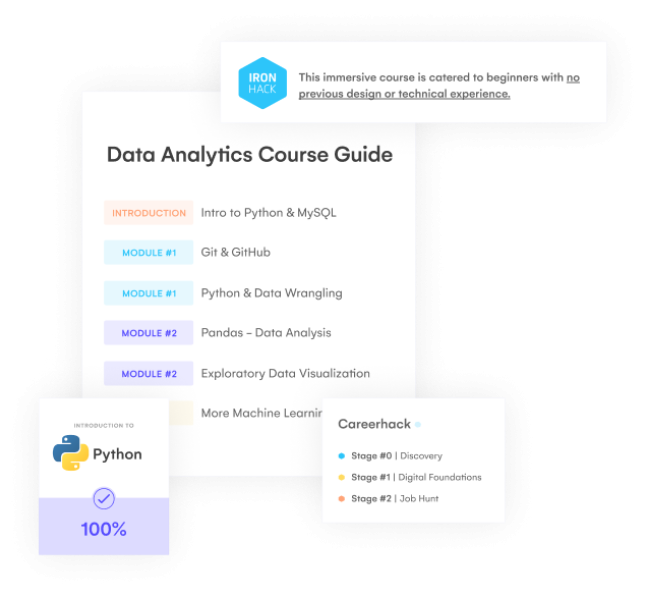 Des enseignements sur place, des groupes dédiés, un soutien continu jusqu'à l'obtention de votre diplôme et des événements réguliers. Chez Ironhack, vous ne serez jamais seul(e) !